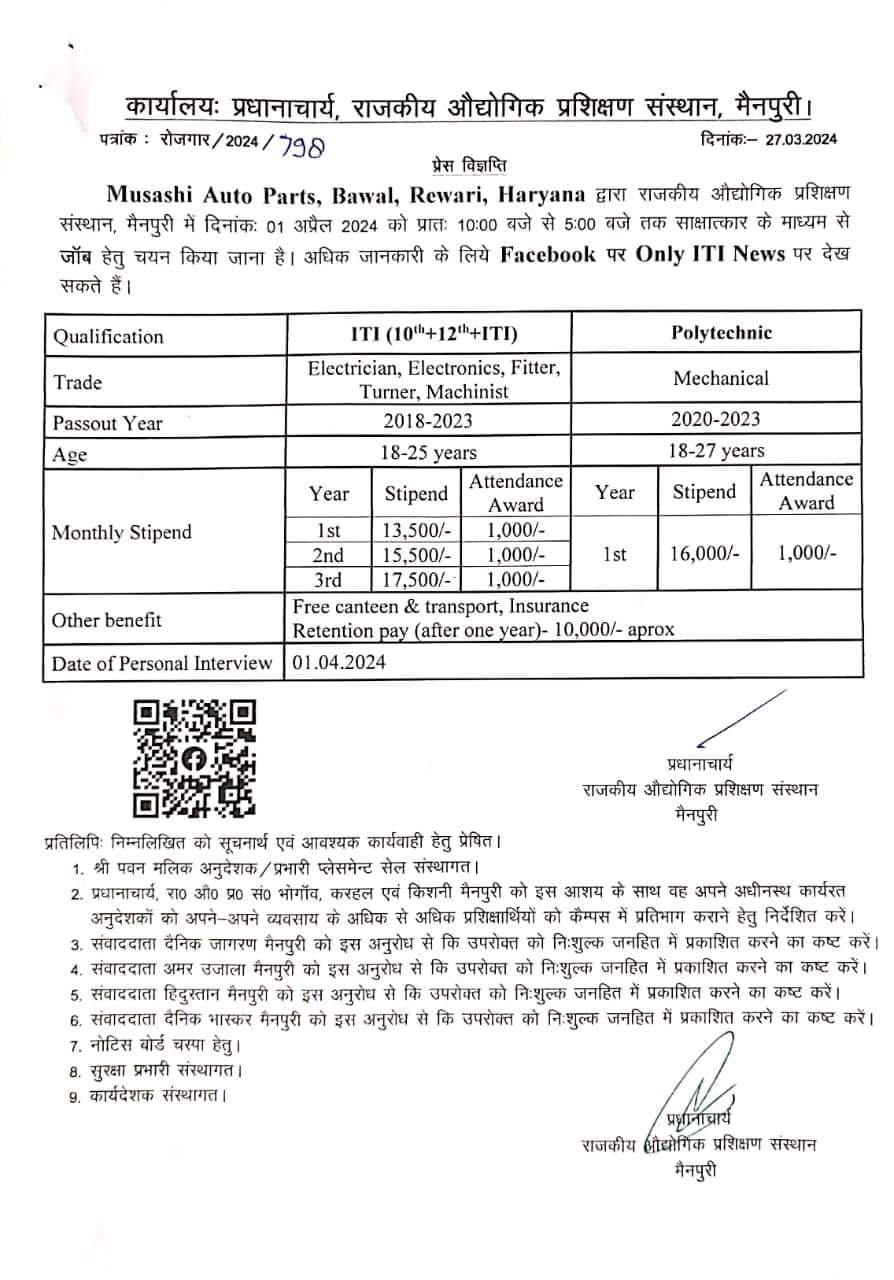 - Address: राजकीय औद्योगिक प्रशिक्षण संस्थान मैनपुरी उत्तर प्रदेश